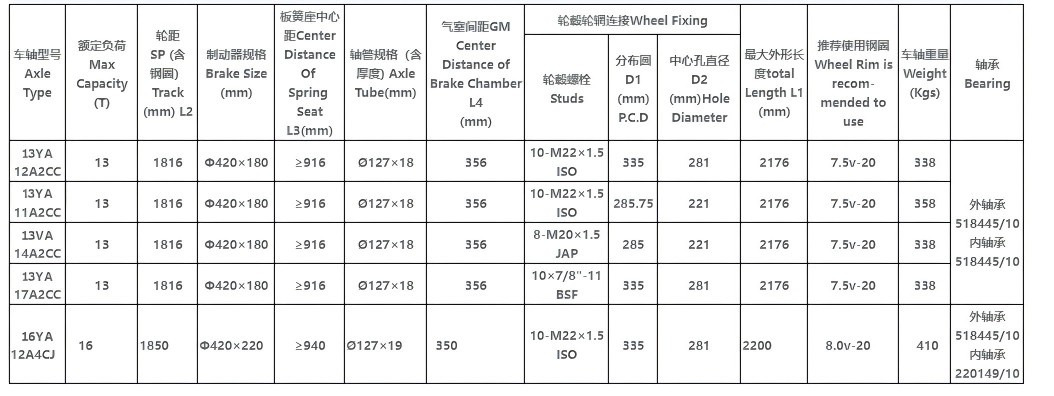 Đây là một trục 13T tiêu chuẩn của Mỹ. Thông qua thiết kế được tối ưu hóa, nó đạt được trọng lượng nhẹ mà không phải hy sinh sức mạnh, giảm trọng lượng của chính nó. Một trục 13T tiêu chuẩn chỉ nặng 330kg. Nó mạnh và bền, cải thiện các tính chất cơ học tổng thể của trục, và có khả năng chống mỏi và độ bền tuyệt vời.